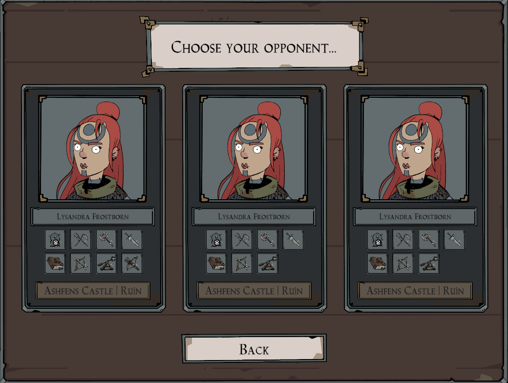 Pretty fun game, ended up doing a ranged build after quite a few failures. The enemies seem to get easier towards the end for some reason but at the final fight I just got outranged by a mile and couldn't do anything since the opposing archers had ridiculously high range. I feel like most builds don't cut it but after figuring out you can space out units a lot on the map the ranged build seems like the best since you can end up getting cheesed by catapults or 1 stack of guys with a billion buffs otherwise I also noticed the first battle sometimes I would face units with buffs or ones that already had an extra unit. I got soft locked 1 fight and had to concede since all the units were defensive /: the shield goblins and the peasants seemed like the worse units while axe mans and archers generally seemed like the best. The 50% movement decrease along with the increased attack speed seem very OP with archers since you don't want archers moving towards the enemy quickly so the decrease is very negligible. I feel like the only way you could beat those archers at the end is with counter death damage..... anyway its a cool game with a lot of different potential strategies but not for the feint of heart.
